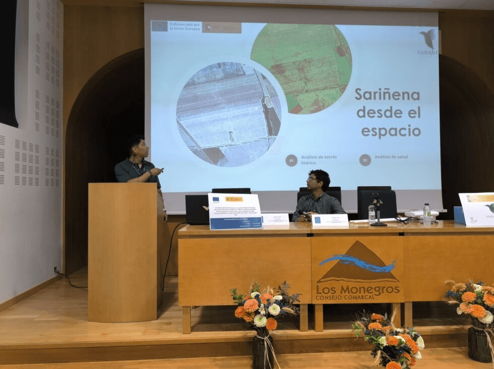 Last weekend, Sanzar Group took part in the Industrial, Agricultural, and Livestock Fair of Los Monegros (FEMOGA), held in Sariñena (Huesca). Our presence included a dedicated stand where we showcased our digital agriculture modules, which combine high-precision satellite imagery, artificial intelligence, and IoT technology, all with a clear goal: to improve irrigation efficiency and optimize crop management.